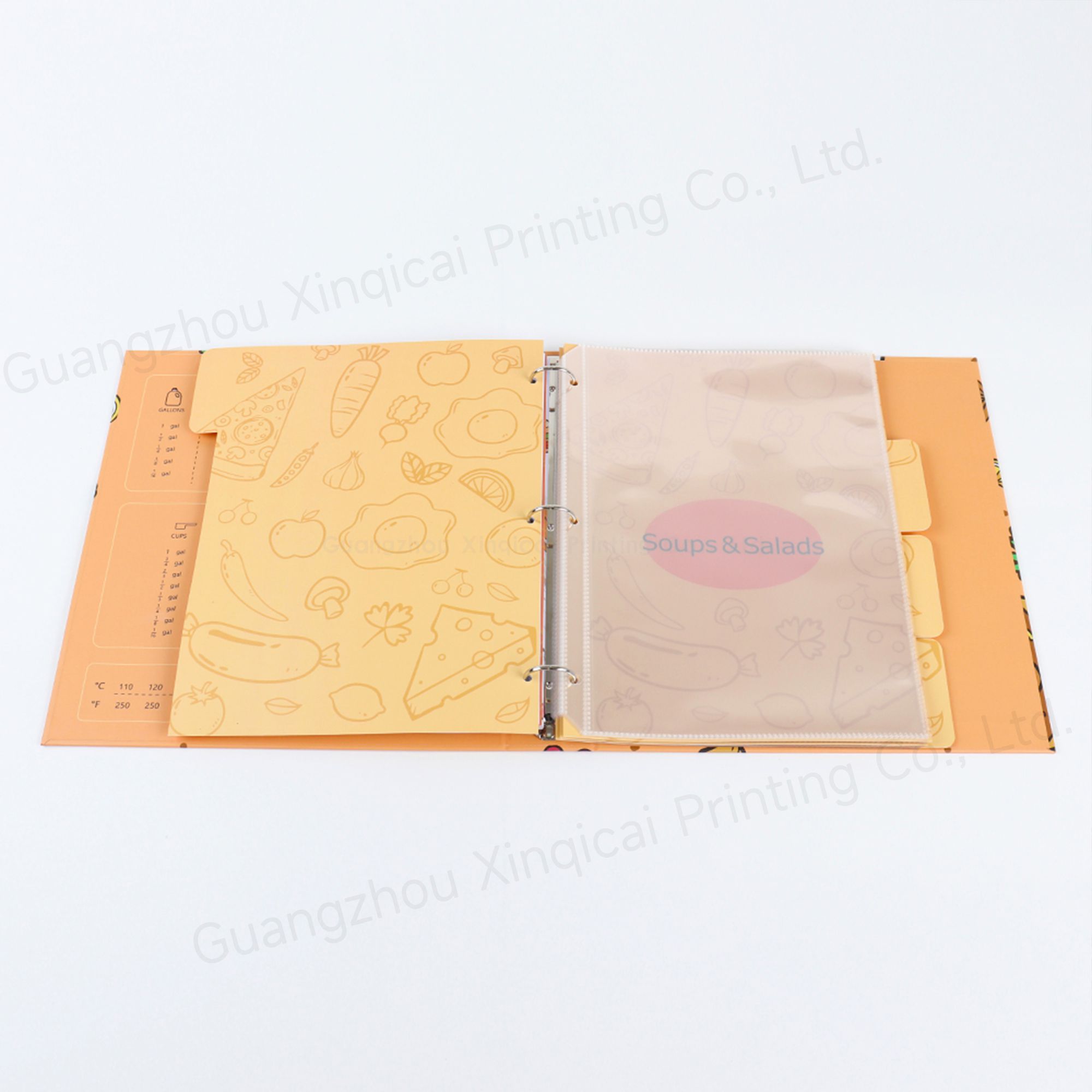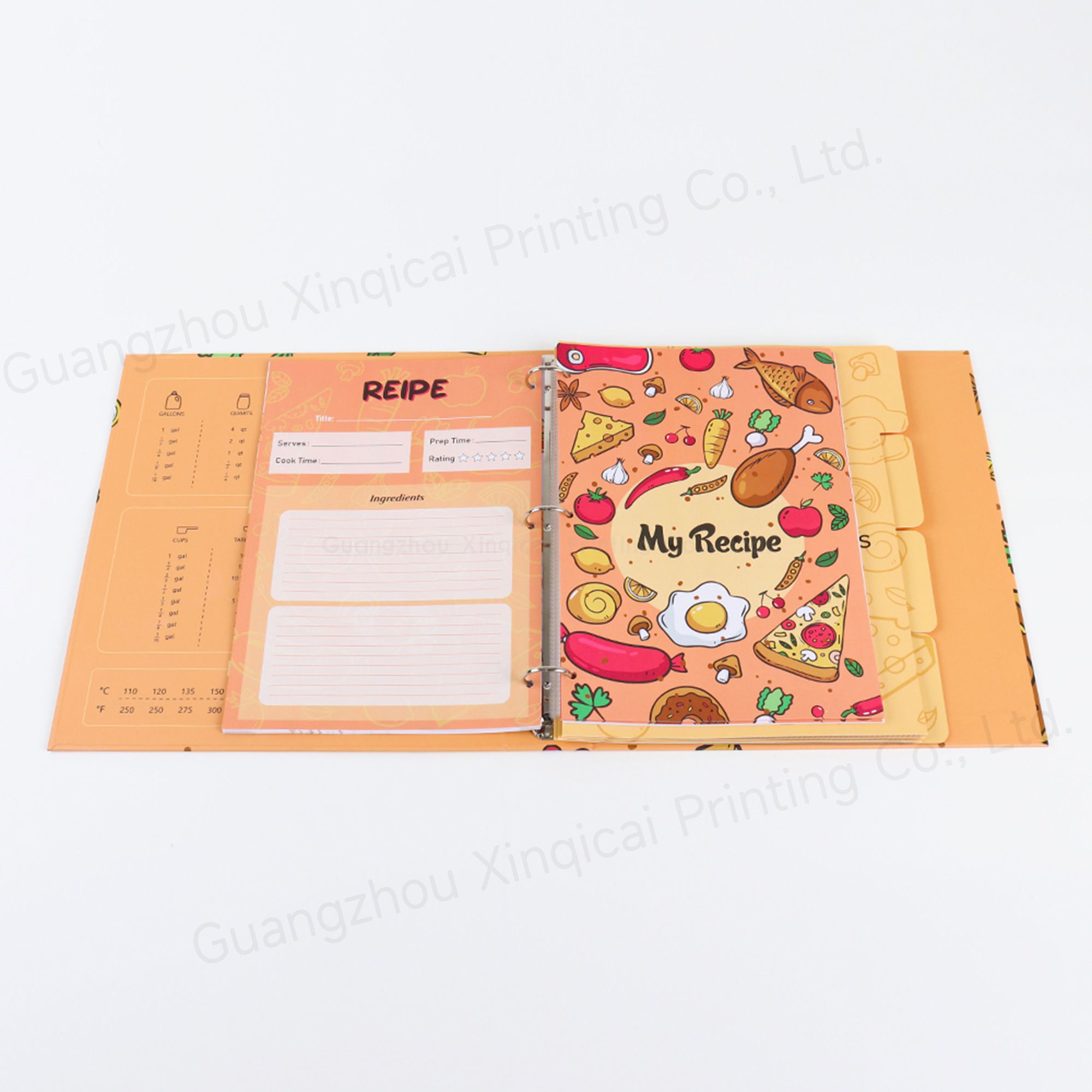 Elevate your culinary brand with Guangzhou Xinqicai’s OEM custom printing service, showcased perfectly through this vibrant “My Recipe” binder set. Bursting with colorful illustrations of food items like pizza, eggs, and veggies, the binder features a cohesive design across its cover, dividers, and recipe sheets—ideal for food enthusiasts and brands aiming to stand out.