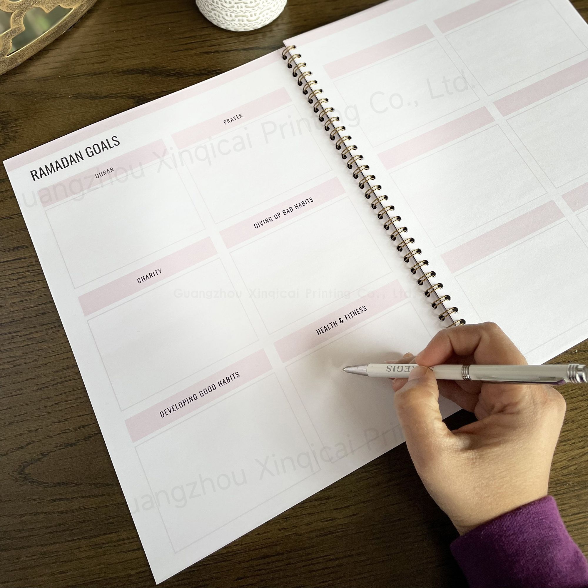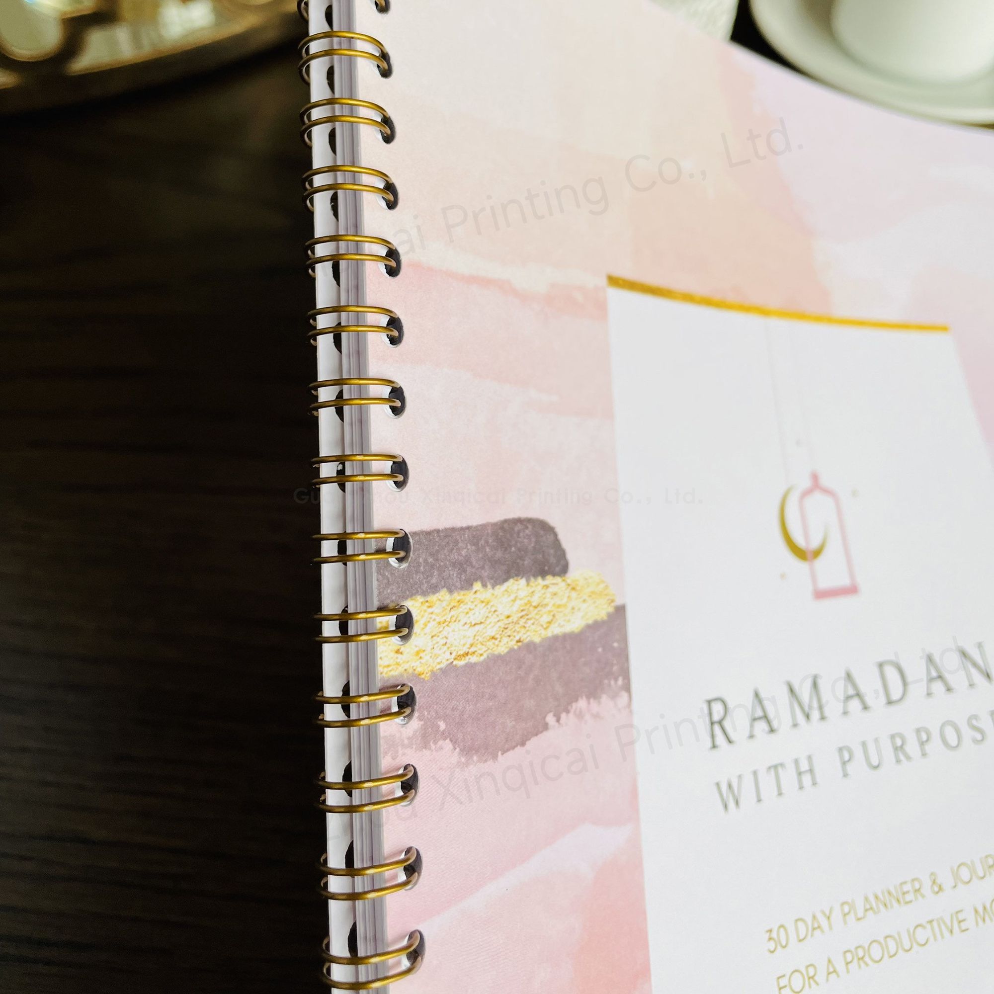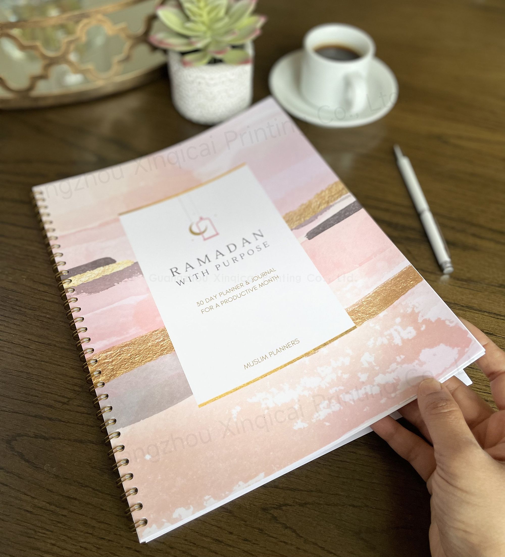 Elevate your Ramadan journey with custom-printed planners from Guangzhou Xinqicai Printing Co., Ltd. Our “Ramadan with Purpose” 30-day planner & journal showcases exquisite craftsmanship: a soft pink watercolor cover with gold foil accents, durable spiral binding, and thoughtfully designed pages for tracking Quran reading, prayer, charity, and personal goals. As a leader in OEM printing, Xinqicai delivers tailored solutions—from unique cover art to customized internal layouts—ensuring your products resonate with Muslim audiences. Trust our precision and creativity to transform your vision into premium, purpose-driven stationery that stands out in the market.