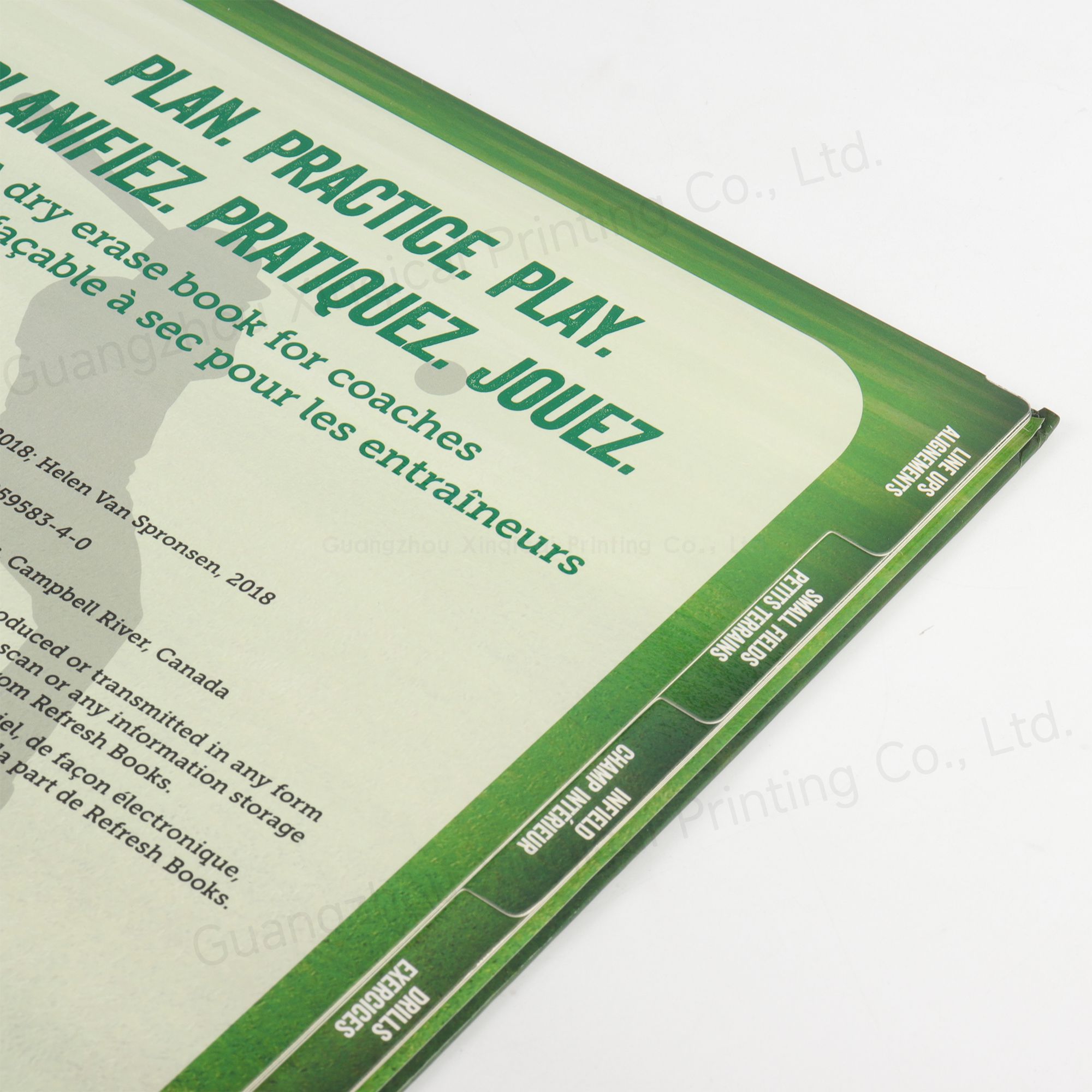 Crafted for brands, sports organizations, and enterprises targeting discerning audiences (like coaches, team managers, or corporate event planners), our products deliver uncompromising quality: vibrant, fade-resistant inks (ideal for bold logos and multi-language text, as seen in the book’s English-French branding) ensure your messaging pops. Our dry-erase coating is scratch-proof, smudge-resistant, and long-lasting—even with daily, high-use applications—thanks to advanced UV-curing and lamination techniques exclusive to Xin Qicai. We specialize in custom spiral-bound formats, precise die-cutting, and dual-language layout alignment (critical for global brands), all while maintaining strict color consistency across bulk orders.