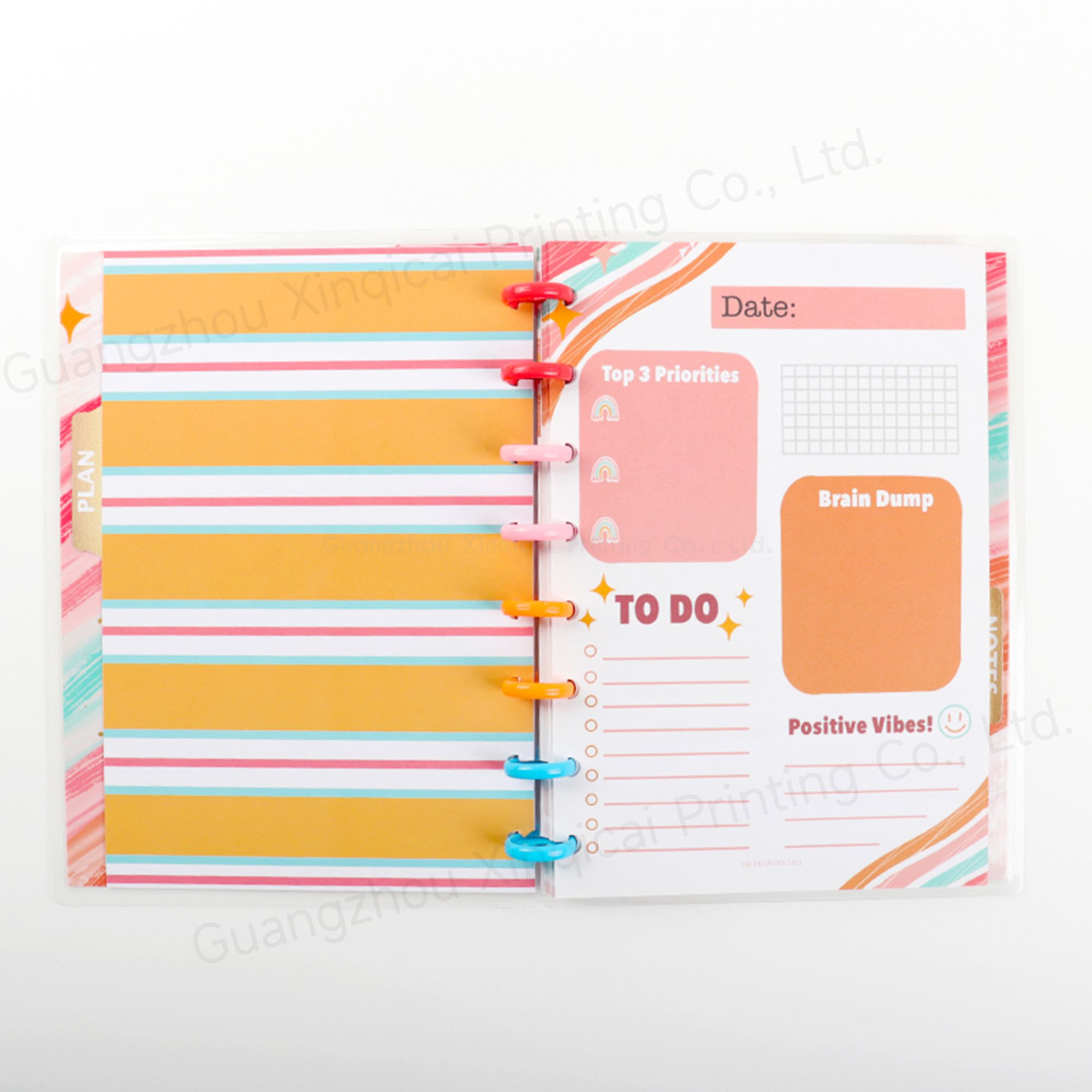 Produced by Guangzhou Xinqicai Printing Co., a leading China-based printer with 25+ years of expertise in custom stationery, we guarantee premium quality: durable clear covers, smooth acid-free paper, and precise, vivid printing that matches the sample’s bold hues. Whether you’re a niche notebook website or a mainstream e-commerce shop, this planner’s Instagram-worthy design drives clicks and repeat buys—perfect for boosting your seasonal sales.