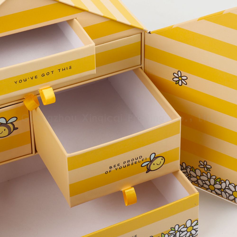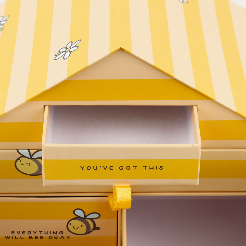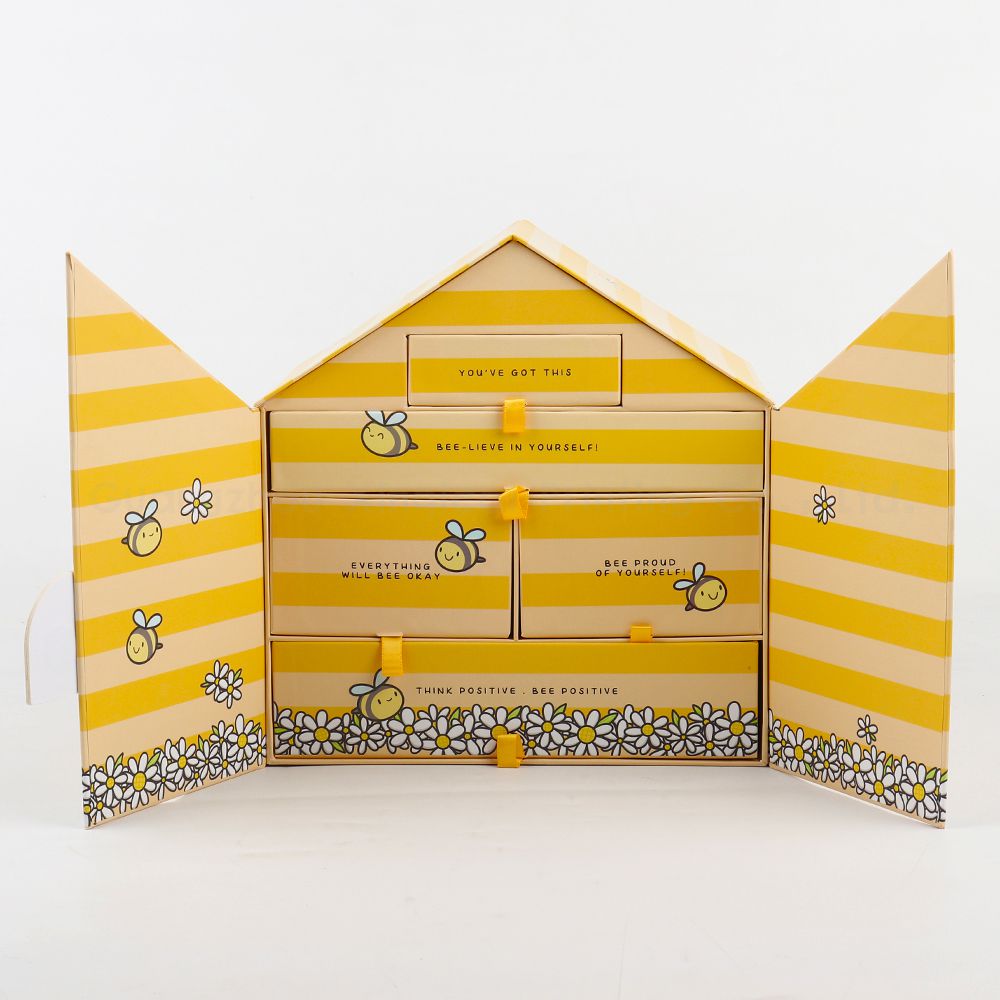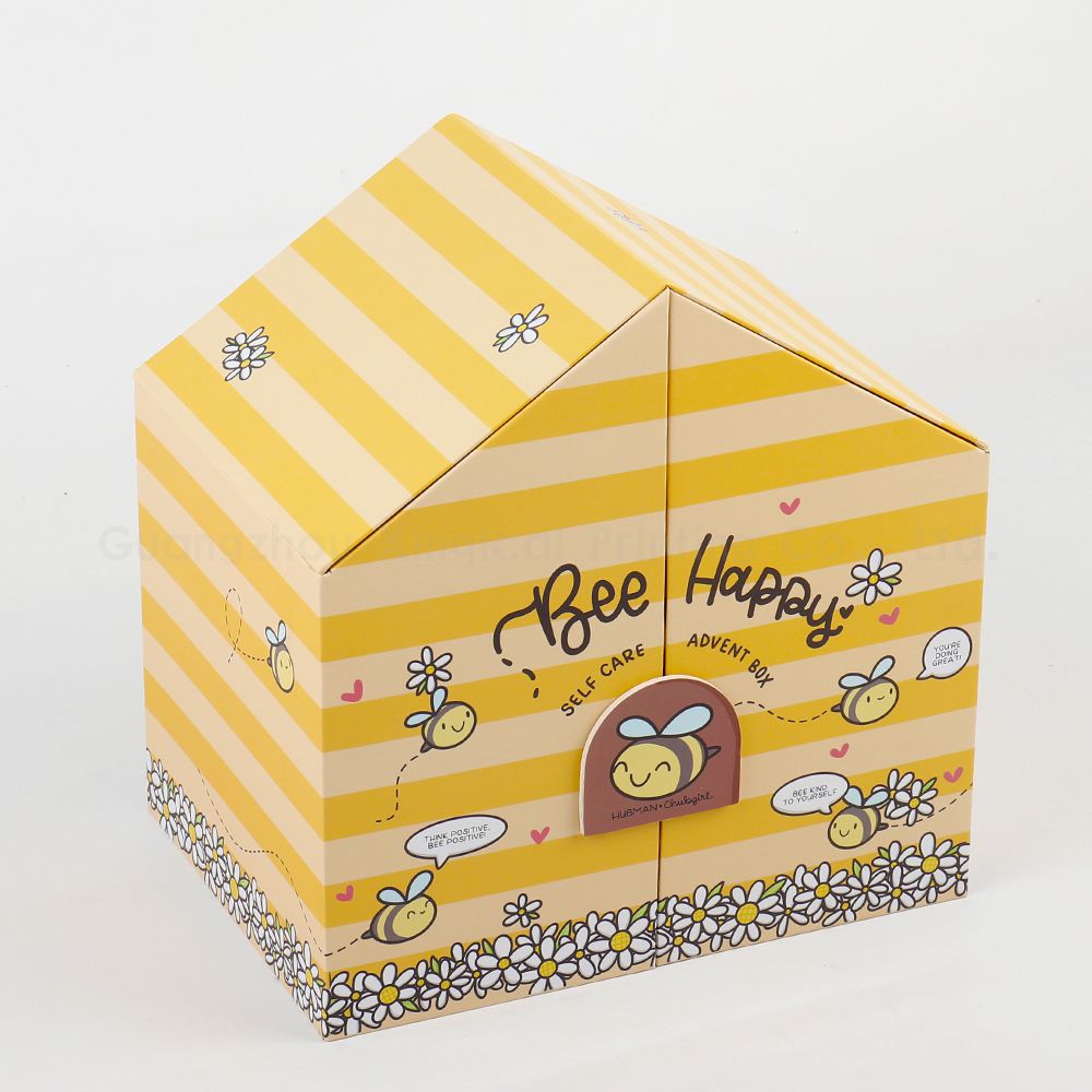 Elevate your brand’s gifting and packaging experience with this charming house-shaped custom advent calendar box, expertly crafted by Guangzhou Xinqicai Printing, your trusted one-stop printing partner with over 25 years of industry expertise. Designed for global brands, retail stores, e-commerce websites, and corporate enterprises targeting European and American markets, this whimsical, multi-drawer box blends playful bee-themed artwork, premium structural design, and durable printing to create an unforgettable unboxing moment for holiday promotions, seasonal campaigns, or customer appreciation gifts.