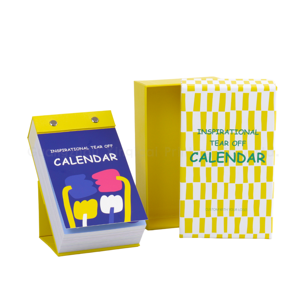 Designed with a sturdy fold-out stand and premium metal rivets, these calendars sit neatly on any desk, brightening workspaces with vibrant artwork and uplifting quotes on every page. The included decorative gift box makes them ideal for corporate gifting, retail promotions, or customer loyalty giveaways.