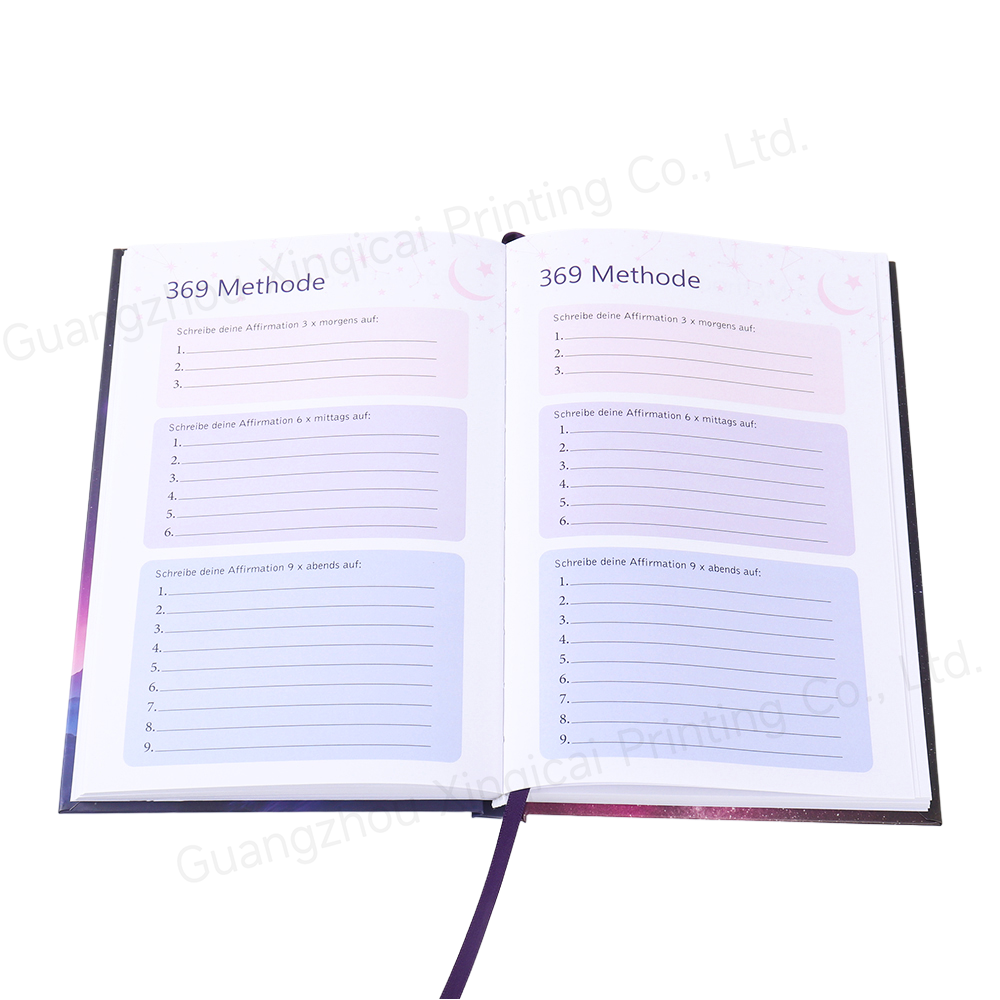 Paper selection: 250-300g coated paper/special paper is used for the cover to ensure the stiffness and printing color reproduction; 80-100g writing paper is used for the inner pages to take into account the smooth writing experience and ink impermeability.