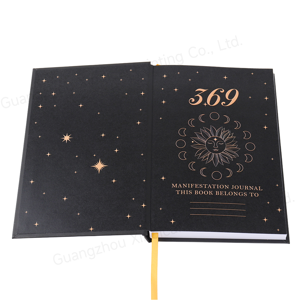 Cover: Depending on the size of the inner pages, cut the prepared black cardstock or cardboard into slightly larger sizes for the front and back covers. Use a pencil to lightly outline the location and outline of the design you want to draw or paste on the cover. Then, use gold acrylic paint, a marker, or apply gold hot-stamping stickers or gold foil to create decorative designs such as "369," the sun, stars, or the phases of the moon. Inner Page Preparation: Arrange the cut inner pages neatly. If using a binder, punch holes according to the machine's instructions and then bind with binding rings. If using glue binding, apply glue to the edges of the pages and press firmly. If thread binding is selected, use a hole punch to punch holes and then use needle and thread to bind the inner pages.