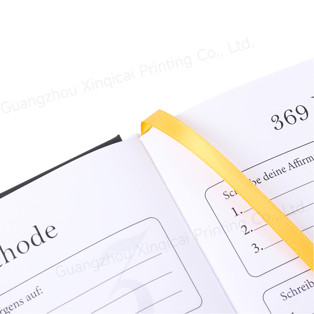 Binding and Assembly: Bind the prepared cover and inner pages together. If you didn't attach a bookmark ribbon when binding the inner pages, you can now secure one end of the yellow ribbon to the appropriate locations on the cover and inner pages (usually near the spine) to complete the notebook assembly.