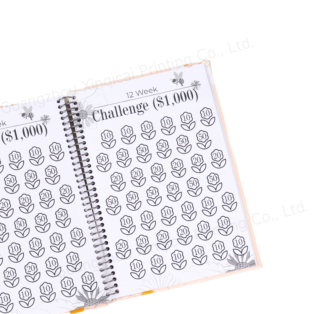 Core features of a Savings Challenge Book: Typically includes a savings tracking sheet, a goal progress bar, and a money-saving tips insert. Coiled notebooks require additional considerations: