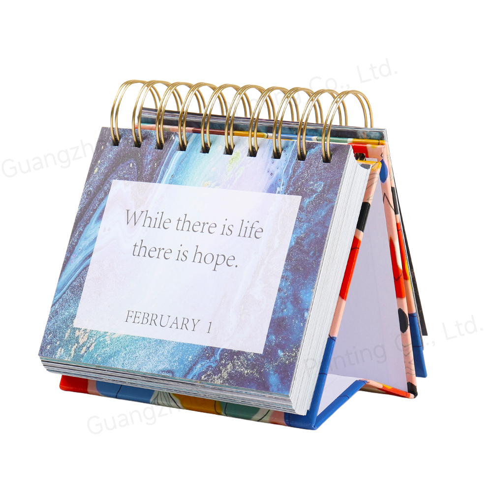 Craftsmanship: Coil binding ensures smooth, frictionless page turns and a secure fit. The calendar stand folds easily and provides a secure support. Its compact size minimizes desktop space, making it a visual focal point.