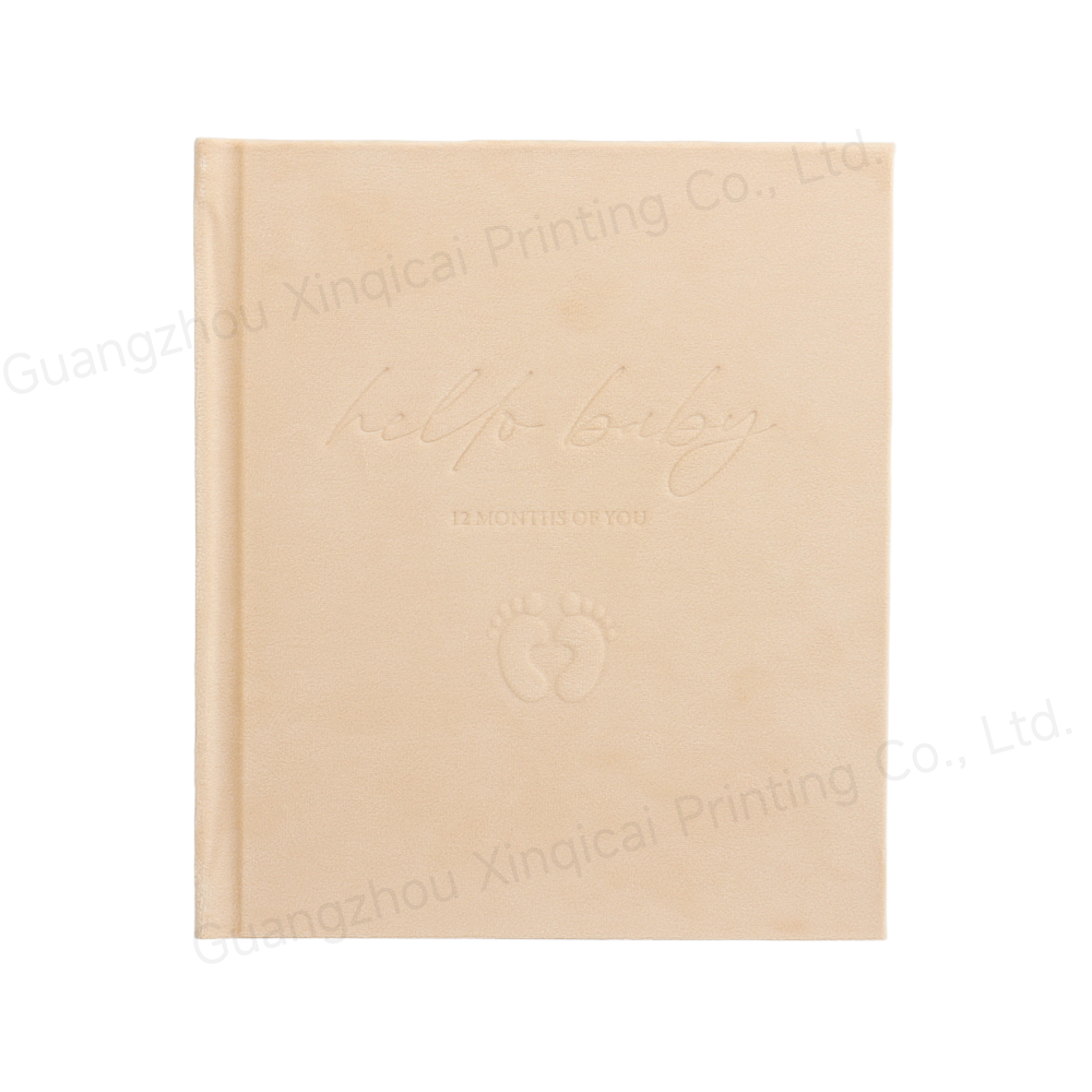 This "Hello Baby 12 Months of You" baby album is a thoughtful way to document your baby's first year of growth. The cover features soft, light tones, delicately embossed with the words "Hello Baby" and adorable little footprints, creating a luxurious and heartwarming experience.