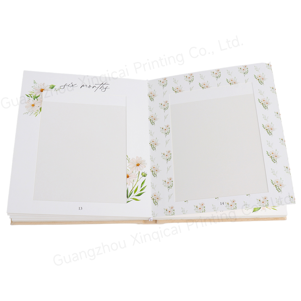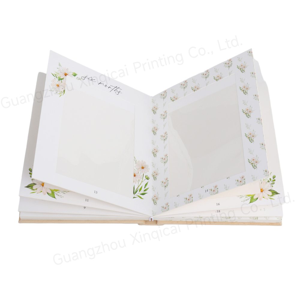 The interior pages are meticulously designed, featuring fresh floral elements and clearly labeled months, such as "six months," allowing you to easily capture your baby's appearance month by month in chronological order. The album features dedicated photo areas for photos from different stages of your baby's life, from their first smile to their first rollover to their first babbling. More than just a photo album, it's a container of time, filled with parents' love and beautiful expectations for their baby. As your baby grows, they can relive those precious moments of their growth.